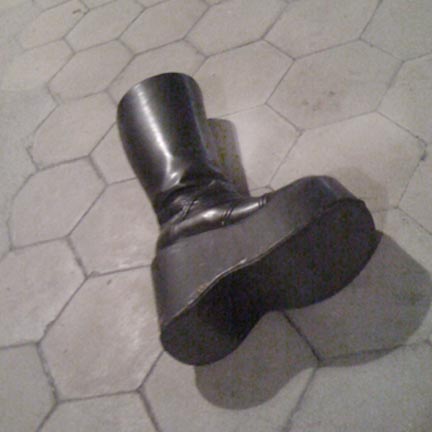 It was later that evening after leaving the Museum that I found out McKenzie was ill and may not make it much longer. I was devastated. How could someone so vibrant be dying? The next day, linda sent me a photo that McKenzie had taken after speaking with me that night. It was a shot of one those great boots she was wearing all by itself lying on the floor. The photo hit a sad and poetic note with me, much more than she would have thought. Inside I knew, that photo would become a tribute to her, to symbolize her leaving this world and leaving an impression as big and as unique as that boot.