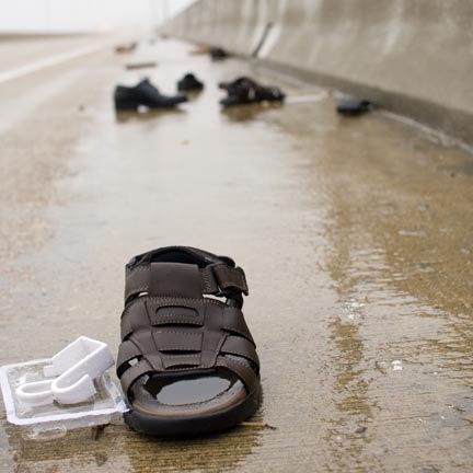 I stumbled upon these lost soles, strewn across the 3 mile bridge in Pensacola on a wet and foggy morning. There were a total of 17 Lost Soles, in this photo #329 through #341 are visible.