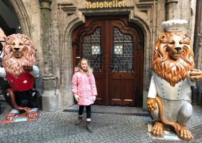 But it was not until after we got home from our trip that I wanted to research the name Ratskeller. It translates to Hall Cellar. It was in the cellar of the town hall of Munich. And to my surprise and dismay the entire theme of the restaurant was Noah’s Ark. We had no idea as we were not in the main dining room plus we were in such a rush that we didn’t check out the decor of the main dining room. It was as if Noah was wanting to tell us he was there in Germany with us, but we didn’t hear him. I felt so bad. Yet at the same time I felt uplifted that we finally figured it out. It now explains the 2 lions at the front.